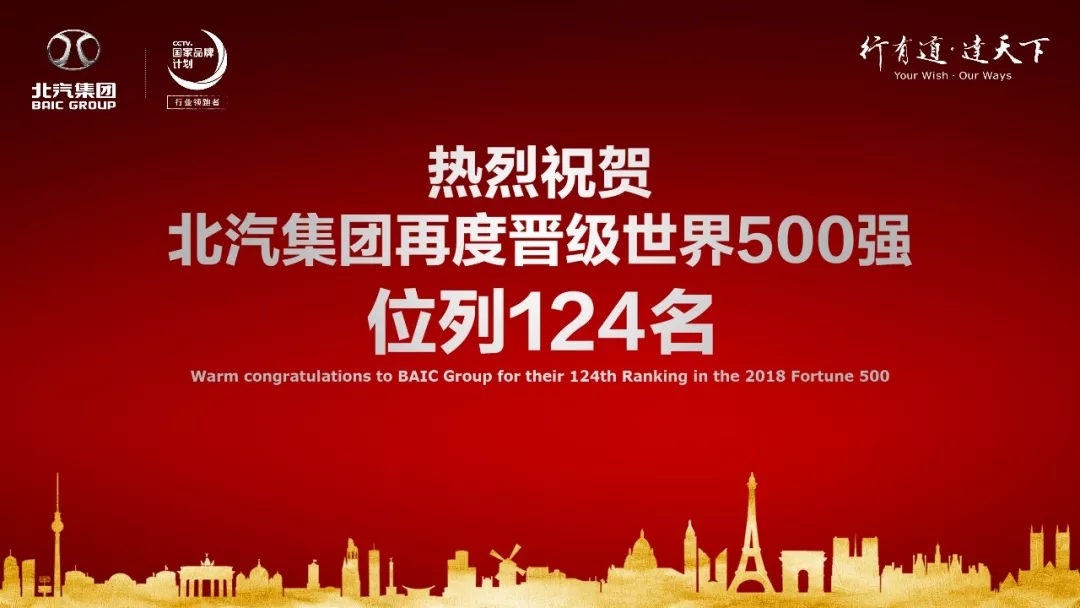 At 19:30 on July 19, 2018 Beijing time, the US magazine Fortune officially announced the 2018 ranking of the Fortune Global 500. BAIC Group ranked 124th in Fortune Global 500 with an operating income of US $ 69.591 billion, up 13 places from 2017. This is the sixth consecutive year that BAIC Group has been short-listed in the Fortune Global 500 and has kept raising in the list year after year. This latest ranking highlights the strong momentum of BAIC Group's reform, transformation and high-quality development.