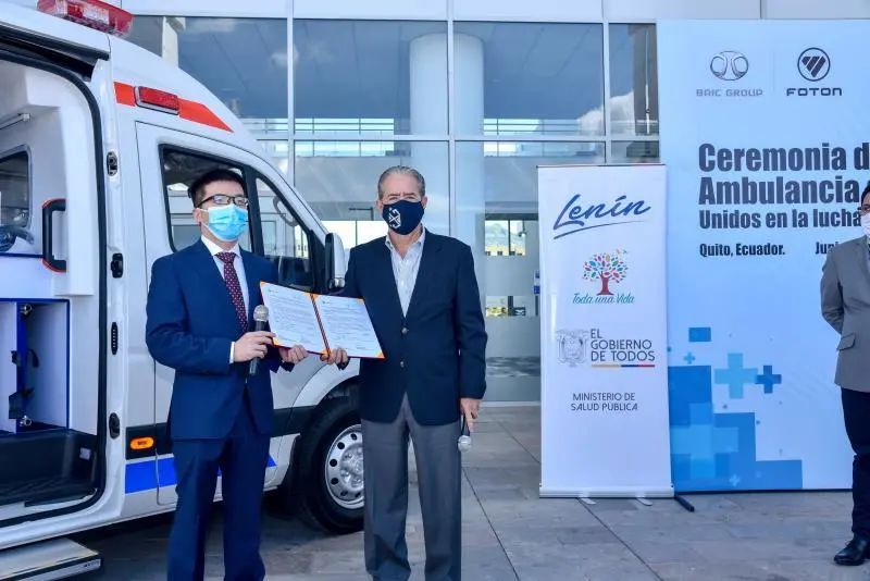 6月11日,北汽集團(tuán)北汽福田&厄瓜多爾衛(wèi)生部負(fù)壓救護(hù)車捐贈(zèng)儀式在厄瓜多爾首都基多舉行。厄瓜多爾公共衛(wèi)生部部長胡安·卡洛斯·澤瓦洛斯博士、中國駐厄瓜多爾大使館參贊陳峰共同參與見證。北汽集團(tuán)和北汽福田首批計(jì)劃向厄瓜多爾、埃及、緬甸、巴基斯坦4國捐贈(zèng)7輛專業(yè)救護(hù)設(shè)備,厄瓜多爾是首個(gè)交車國家,該車也是厄瓜多爾所擁有的首輛負(fù)壓救護(hù)車。