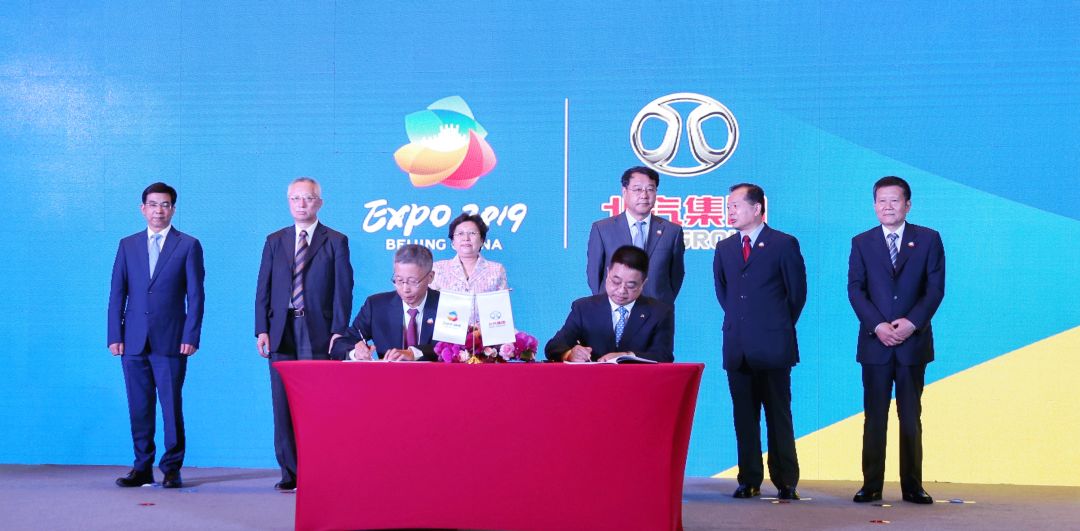2018年5月17日,北京世界園藝博覽會戰略合作伙伴簽約儀式在京舉行,通過此次簽約,北汽集團正式成為北京世界園藝博覽會全球合作伙伴。北京市副市長王紅,世界園藝博覽會政府總代表王錦珍,世界園藝博覽會事務協調局常務副局長,北汽集團及其成員單位北京汽車、昌河汽車、北汽新能源、北京奔馳、北汽福田、華夏出行、北汽摩的相關領導共同出席了簽約儀式。